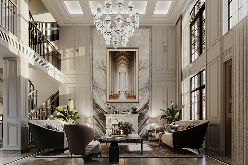 Phòng khách riêng biệt thường là những ngôi nhà có diện tích lớn hoặc biệt thự chính vì vậy không gian phòng khách thường rất lớn. Nên việc thiết kế phải thỏa mãn những yếu tố về công năng và đẳng cấp sử dụng